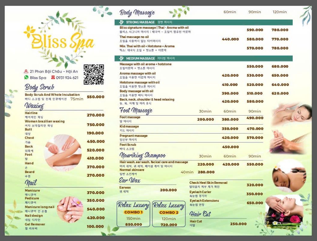 Sau những ngày làm việc vất vả với nhiều áp lực trong công việc mãi ngồi một tư thế với chiếc máy tính và tiếp xúc với vô vàn khói bụi, hoá chất độc hại sẽ làm cho cơ thể của bạn trở nên căng thăng và mệt mỏi, cơ thể của bạn chính là nơi phải gánh chịu những cơn đau các vùng cơ đặc biệt là vai, bắp chân, thắt lưng, gáy, đầu…, vậy để giải quyết được vấn đề trên thì BLISS SPA tại Hội An chính là nơi giúp cho bạn thư giãn toàn thân với các phương pháp massage chuyên nghiệp, uy tín hàng đầu được spa đúc kết nhiều năm sẽ giúp cho bạn cảm thấy thư giãn thoả mái.